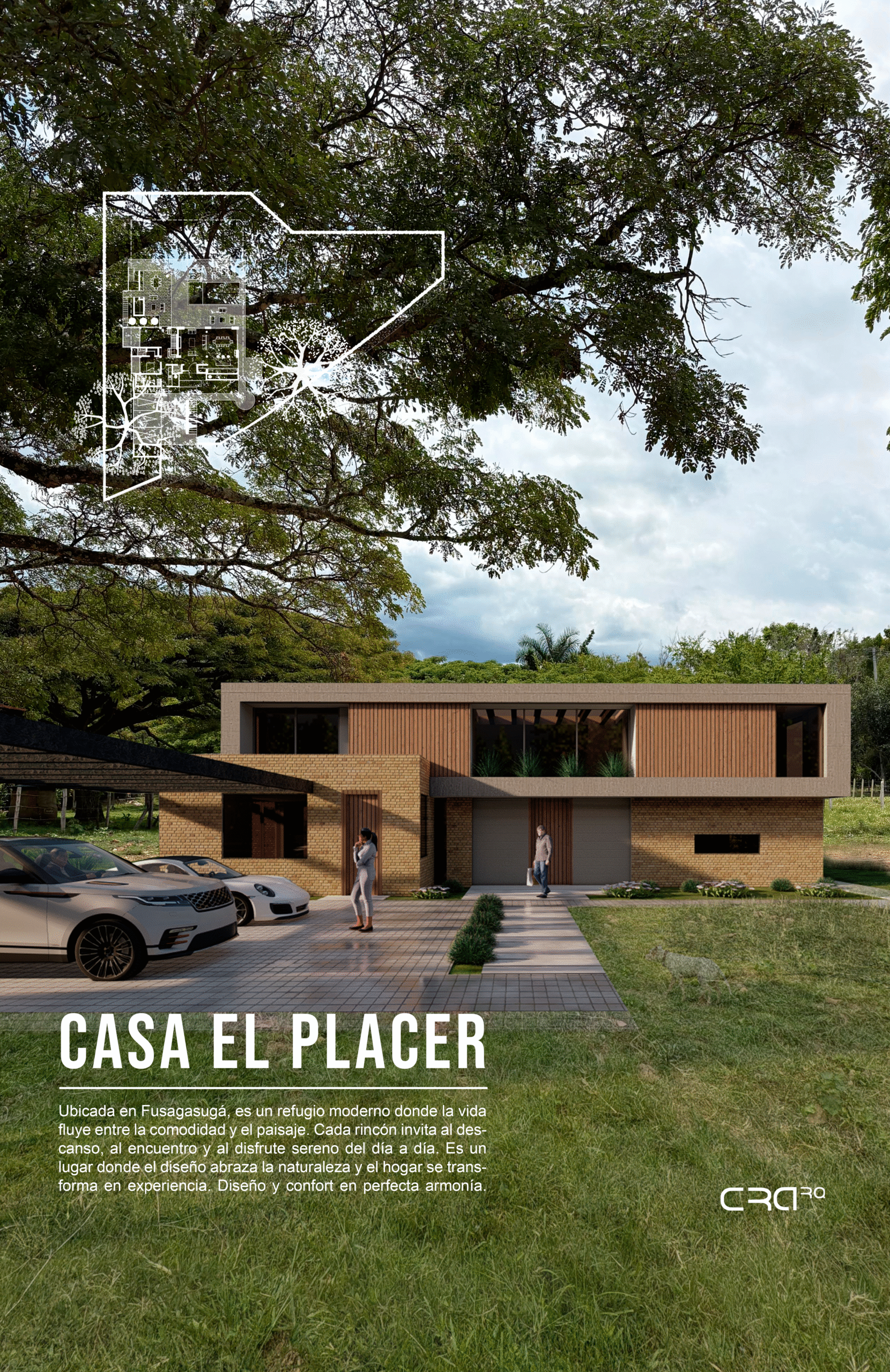 Casa moderna en la vereda El Placer, Fusagasugá, diseñada con líneas limpias y materiales honestos como refugio de descanso.